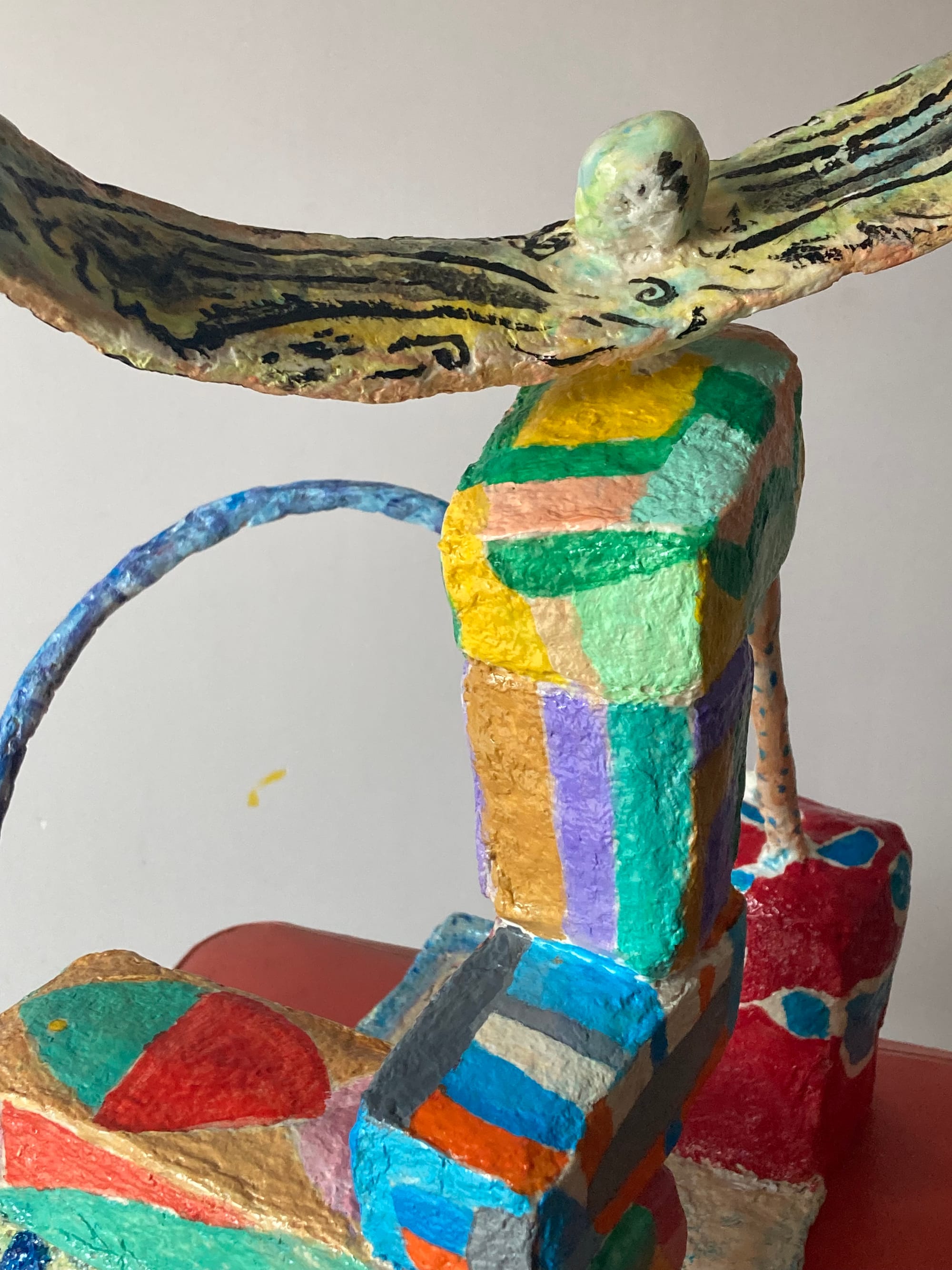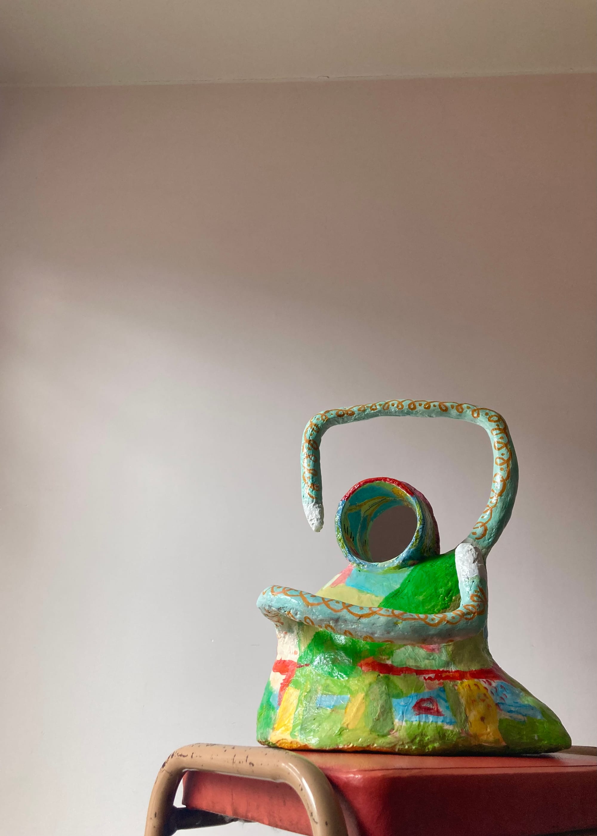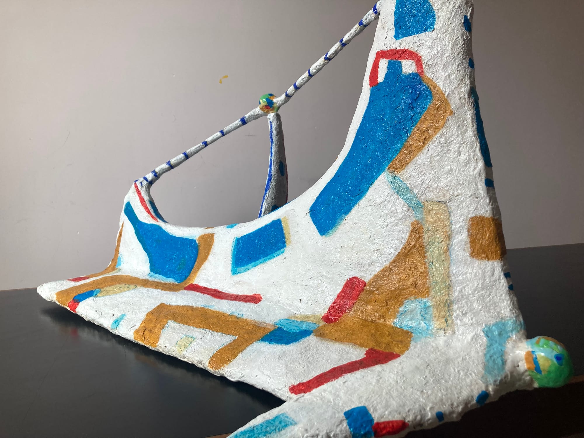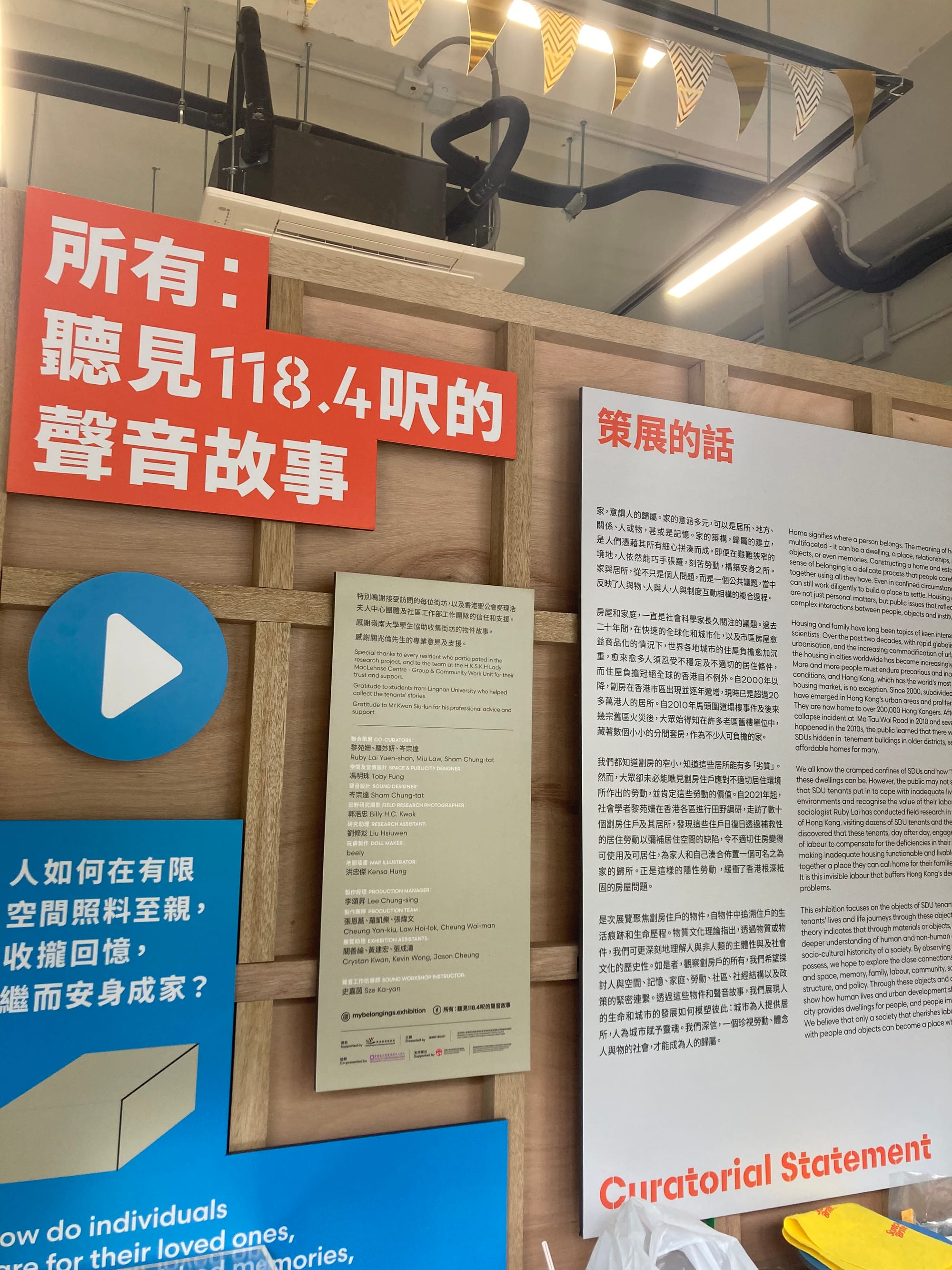 紙泥給搓成一個又一個公仔。混著蛋盒紙的泥是灰色,沒混的是雪白,曬乾後會暖成淡黃,後來都給貴畫成五顏六色。貴給阿婆看公仔,這個啊,成舊薑咁,阿婆看到的都給看出阿婆是在街市和廚房混的。這個呢?成個茶壺咁。這個呢?幾好,好在什麼阿婆沒講。最後這個阿婆沒講半句話但看最耐,好似好有感覺咁,貴覺得,有感覺就好。住劏房的小孩在耳筒裡問我們:你有無些東西,沒了的話會少了些什麼?我想起雪球和那灘想像的水。展覽裡看的都有聲。做聲音的人說,什麼都有聲音,充電器有,光合作用也有,不過人沒能聽著。展覽外有聲音導航,社區散步,上上落落,行走劏房人家生活路線。那麥記是口罩日子的課室,門口躺著半個招財福堡,黑淑汁依然濕潤。外頭大廈平台層圍起百九幾台冷氣機,細心睇劏房是有樣睇。劏是有畫面的字,簡樸太抽象,是想像力太簡樸。長樓梯一級一級的灰色深淺不一,小孩話,是好多阿叔周圍痾尿。灰色真充滿氣息。貴在公仔的藍色橙色中間畫來一片灰,我說這個灰好囂張,貴想了想:灰色好好畫。有什麼好畫什麼好玩,紙泥搓成的是公仔或玩偶或雕塑或什麼都好,寫出來不過是兩隻字。低班小孩看到顏色裡有條船上有條魚,小孩腦裡的魚又是什麼模樣?斷估不是個魚字。做什麼給看到什麼都好,有感覺就好。