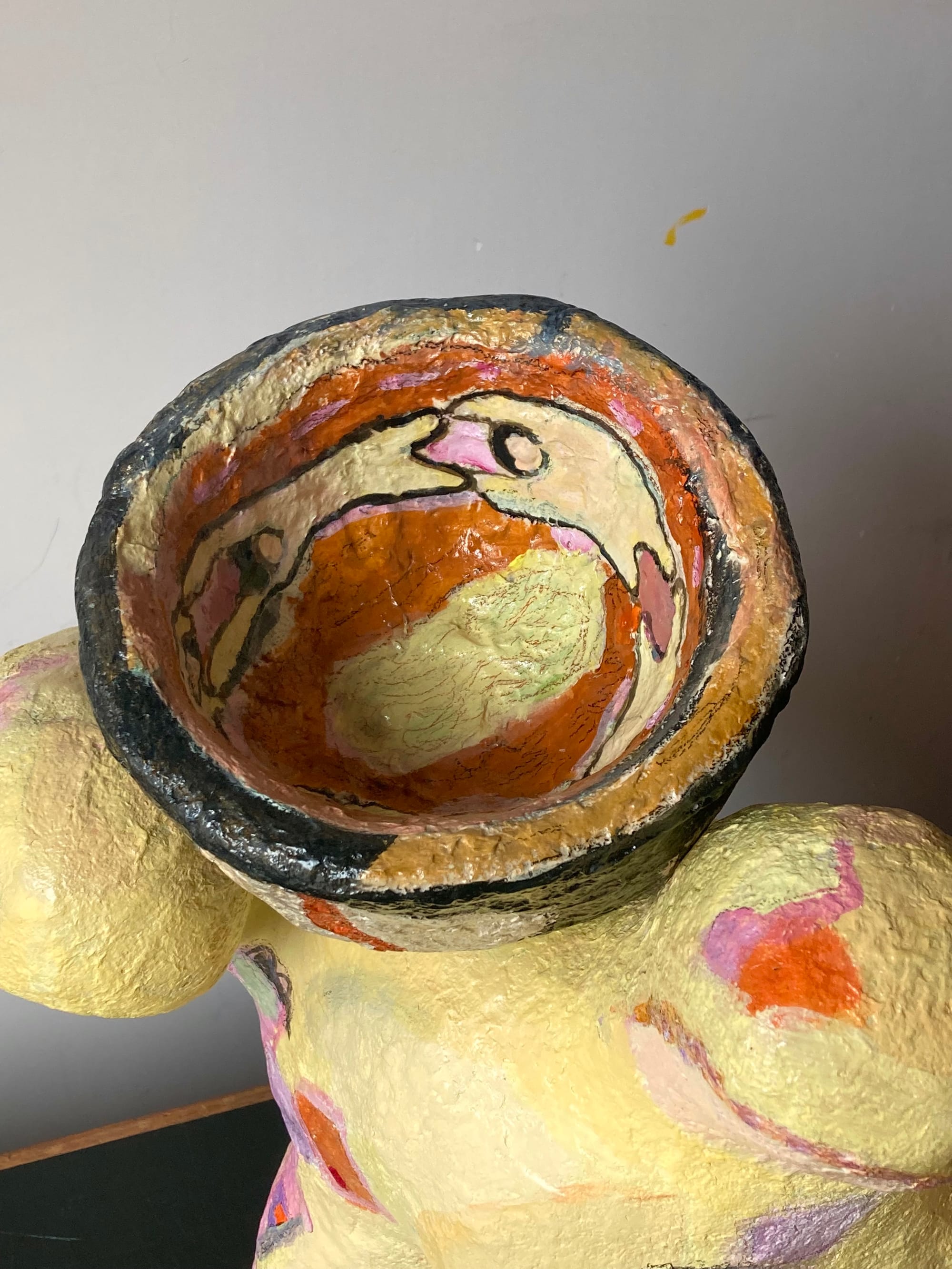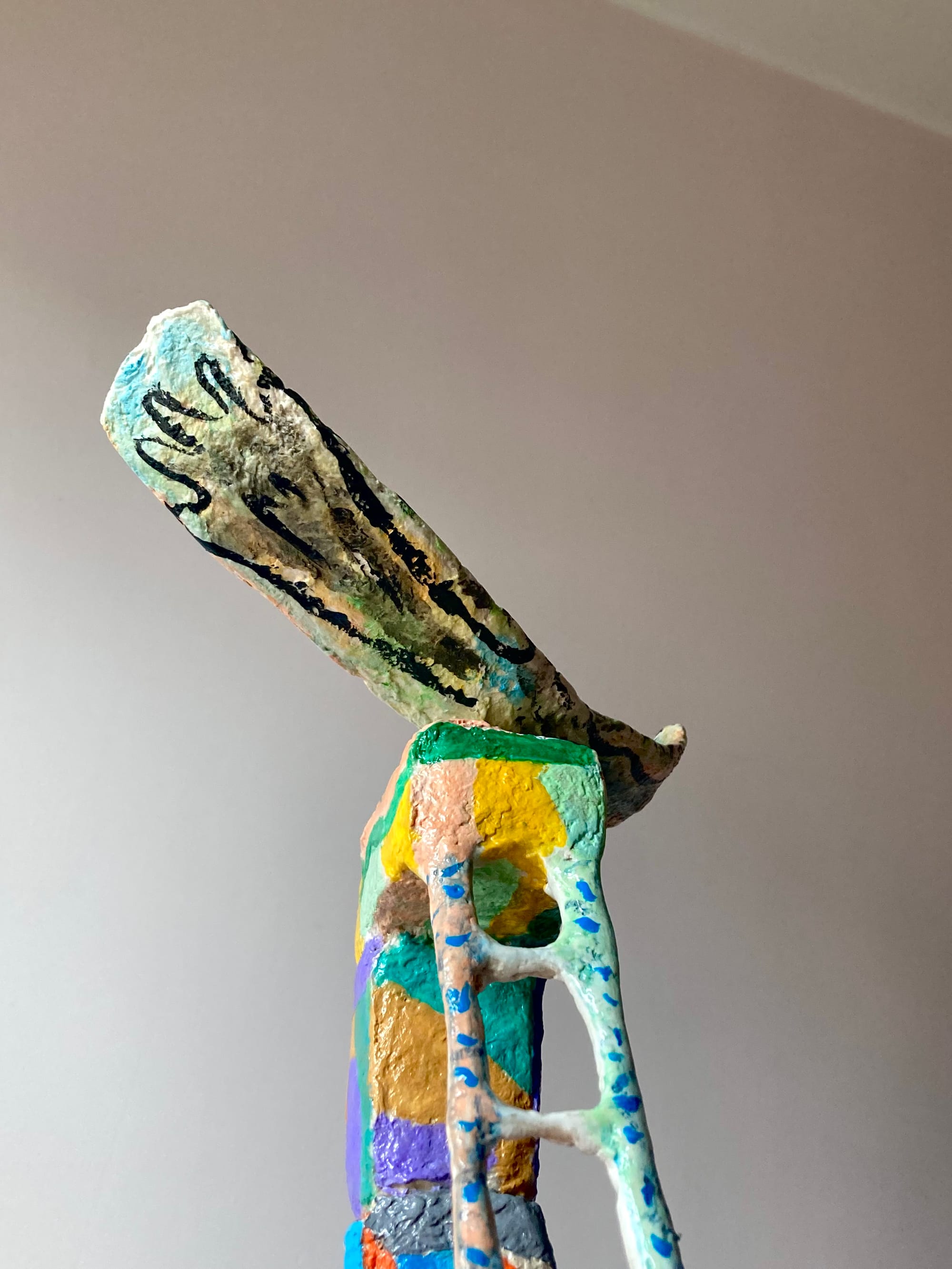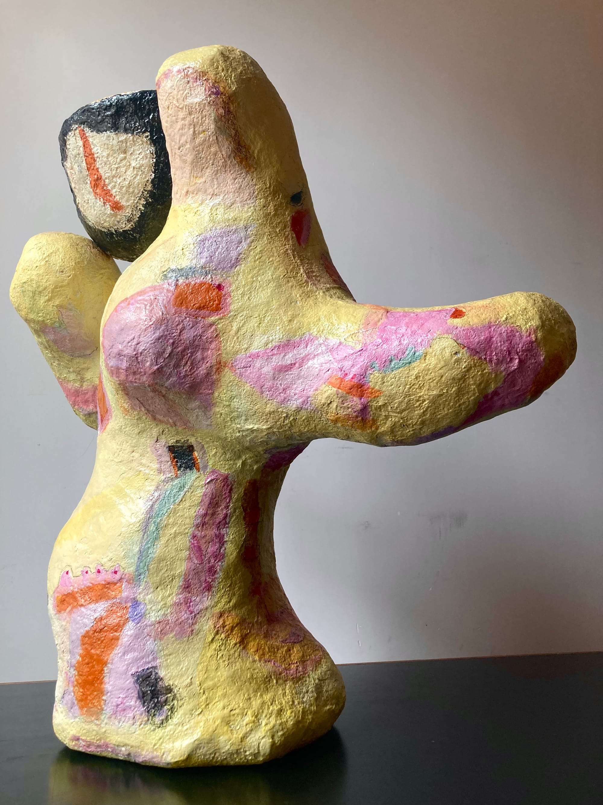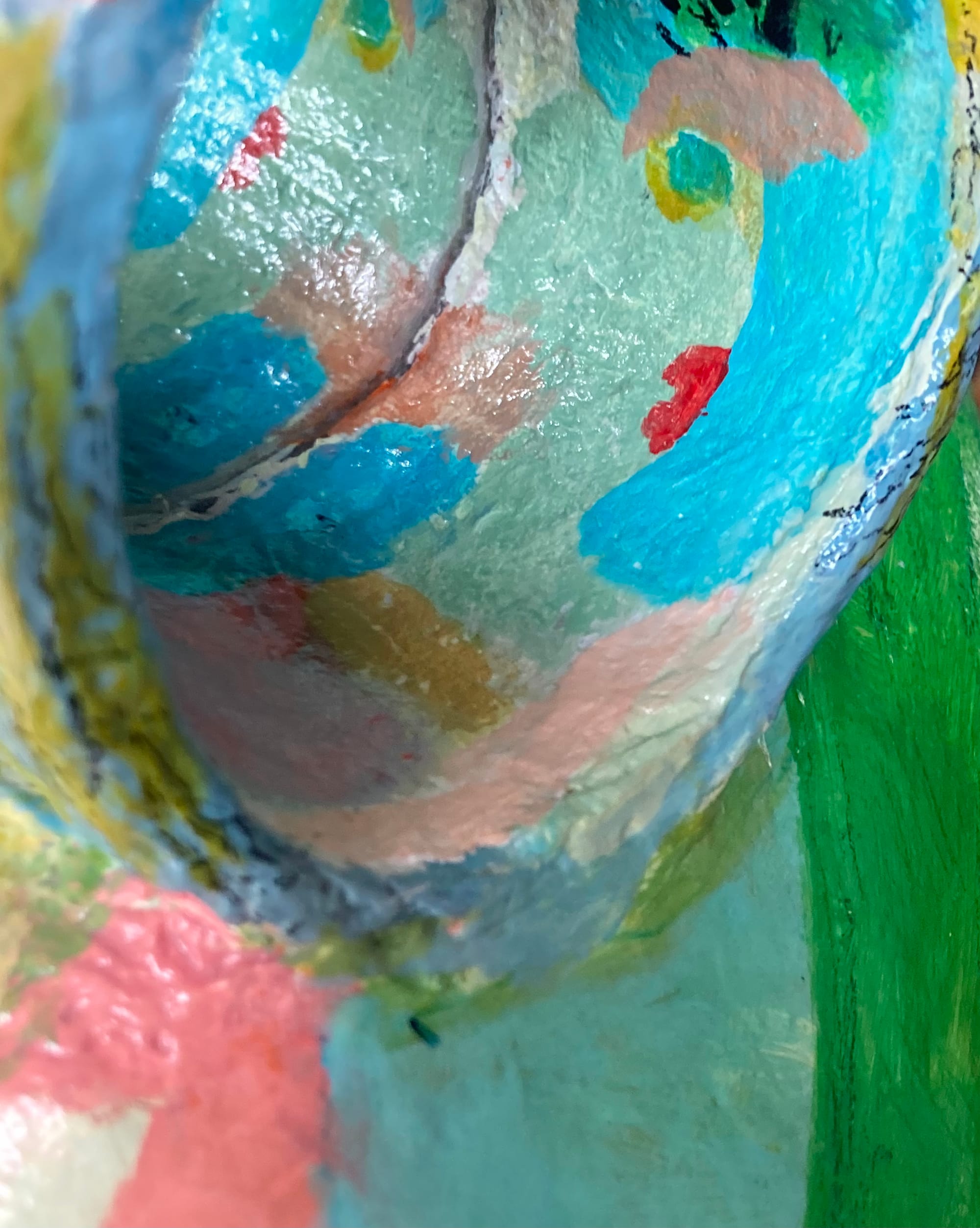 紙泥給搓成一個又一個公仔。混著蛋盒紙的泥是灰色,沒混的是雪白,曬乾後會暖成淡黃,後來都給貴畫成五顏六色。貴給阿婆看公仔,這個啊,成舊薑咁,阿婆看到的都給看出阿婆是在街市和廚房混的。這個呢?成個茶壺咁。這個呢?幾好,好在什麼阿婆沒講。最後這個阿婆沒講半句話但看最耐,好似好有感覺咁,貴覺得,有感覺就好。住劏房的小孩在耳筒裡問我們:你有無些東西,沒了的話會少了些什麼?我想起雪球和那灘想像的水。展覽裡看的都有聲。做聲音的人說,什麼都有聲音,充電器有,光合作用也有,不過人沒能聽著。展覽外有聲音導航,社區散步,上上落落,行走劏房人家生活路線。那麥記是口罩日子的課室,門口躺著半個招財福堡,黑淑汁依然濕潤。外頭大廈平台層圍起百九幾台冷氣機,細心睇劏房是有樣睇。劏是有畫面的字,簡樸太抽象,是想像力太簡樸。長樓梯一級一級的灰色深淺不一,小孩話,是好多阿叔周圍痾尿。灰色真充滿氣息。貴在公仔的藍色橙色中間畫來一片灰,我說這個灰好囂張,貴想了想:灰色好好畫。有什麼好畫什麼好玩,紙泥搓成的是公仔或玩偶或雕塑或什麼都好,寫出來不過是兩隻字。低班小孩看到顏色裡有條船上有條魚,小孩腦裡的魚又是什麼模樣?斷估不是個魚字。做什麼給看到什麼都好,有感覺就好。